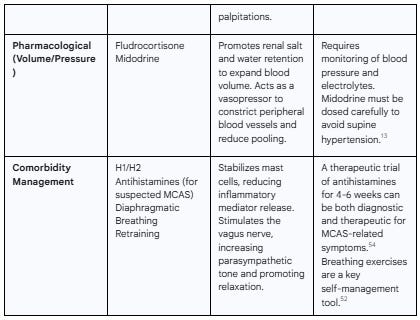 When non-pharmacological interventions are insufficient, medications may be added to target specific symptoms. The use of these medications is often off-label, based on clinical experience from treating traditional forms of dysautonomia, and must be highly individualized.