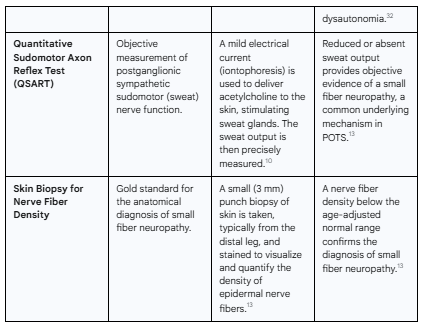 Neuropathic POTS: This form is associated with a length-dependent, small-fiber peripheral neuropathy.16 The small, unmyelinated nerve fibers that are responsible for signaling blood vessels in the lower limbs to constrict are damaged. This denervation leads directly to impaired vasoconstriction and venous pooling.17